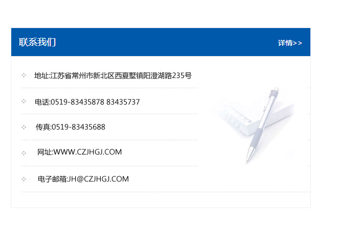 地址:常州市新北區友邦商務大廈1幢16、17層  電話:0519-85101652  傳真:0519-85112595  郵編:213022  網址:www_cz-jiayue_cn.bruim.com  郵箱:xiajifengaa@163.com